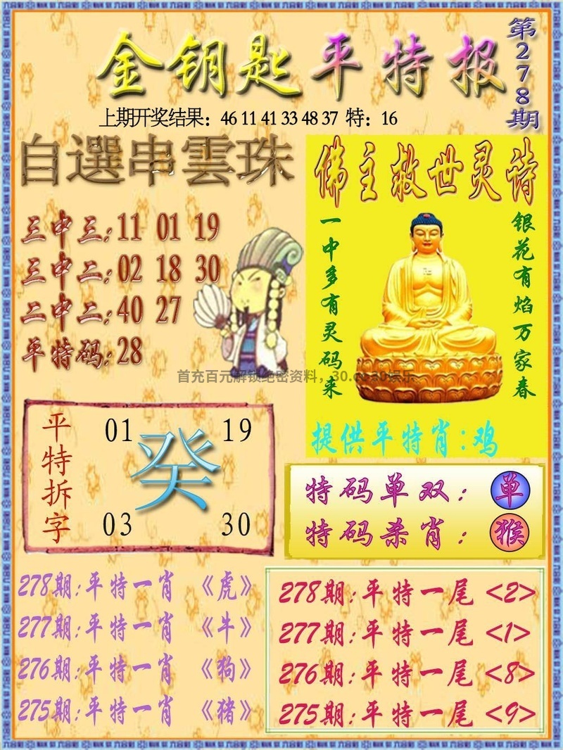 276期必中三行『水金火』开:鸡09准 |