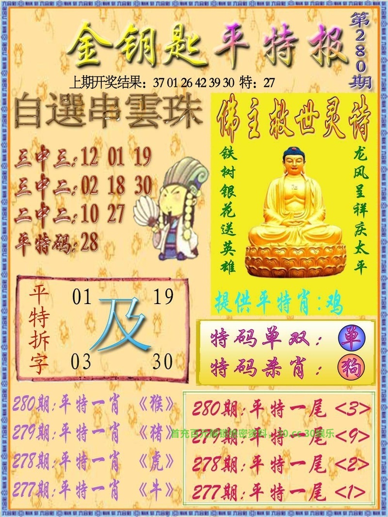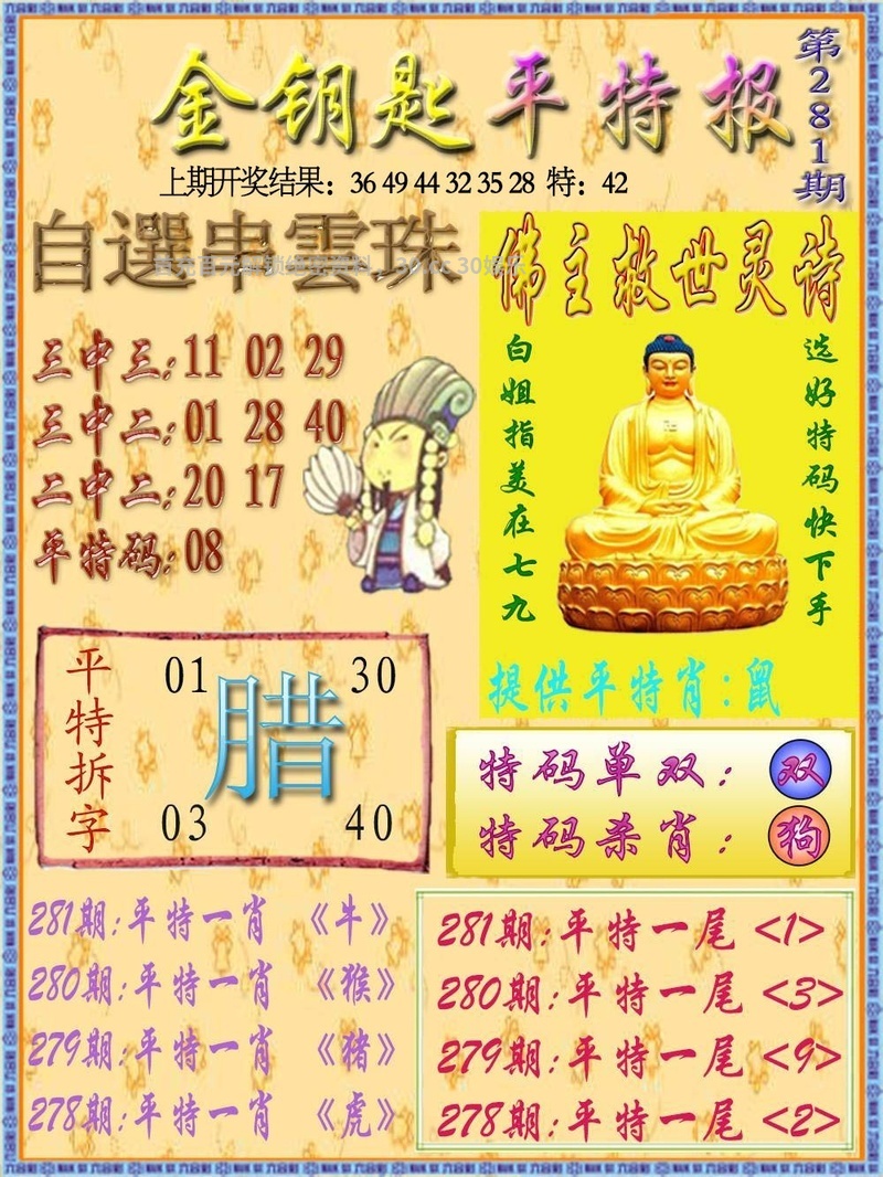 280期必中三行『金木火』开:鼠42准 |